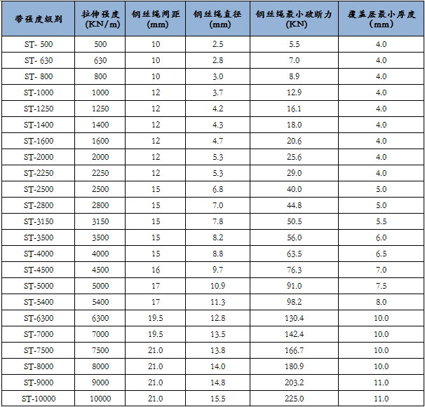 1 、抗拉強(qiáng)度高:適用于單機(jī)大跨度、長(zhǎng)距離輸送物料。