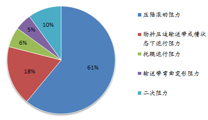根據(jù)近些年來(lái)的研究,在水平方向布置的輸送帶的總驅(qū)動(dòng)能耗中,約有61%的能耗用于克服輸送帶在通過(guò)托輥和帶輪的壓陷滾動(dòng)阻力。