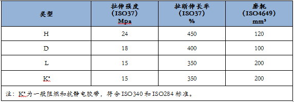 上表標(biāo)準(zhǔn)值有助于對(duì)實(shí)際運(yùn)用過(guò)程中選擇合適的覆蓋膠,對(duì)于覆蓋膠的耐磨及耐切割性能的可靠評(píng)估不能單獨(dú)由拉伸強(qiáng)度、伸長(zhǎng)率以及磨耗來(lái)決定。